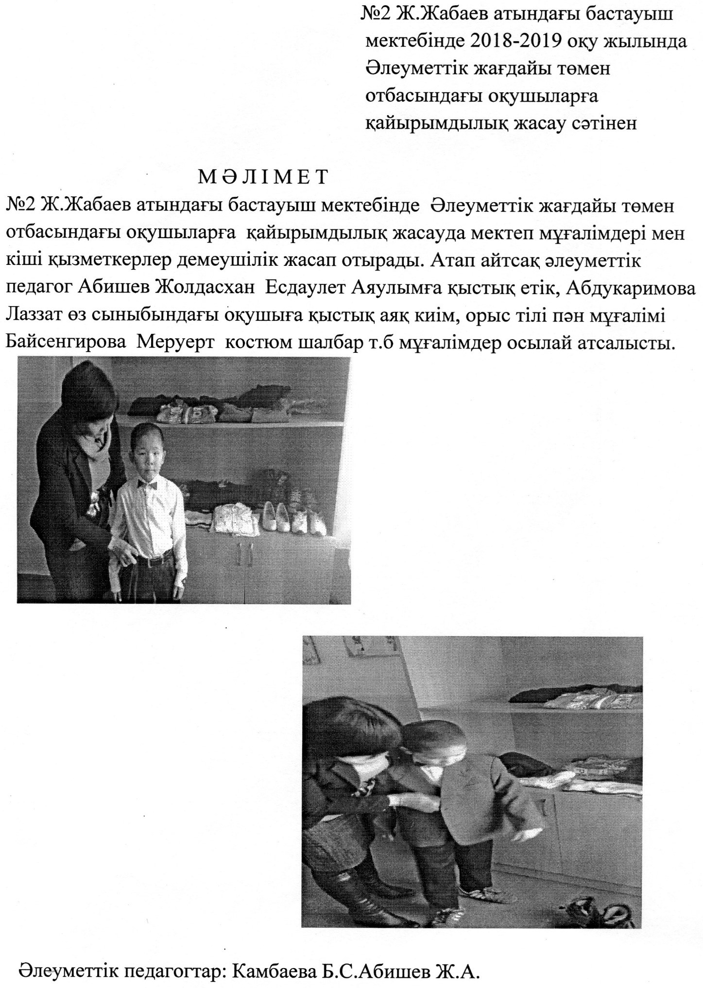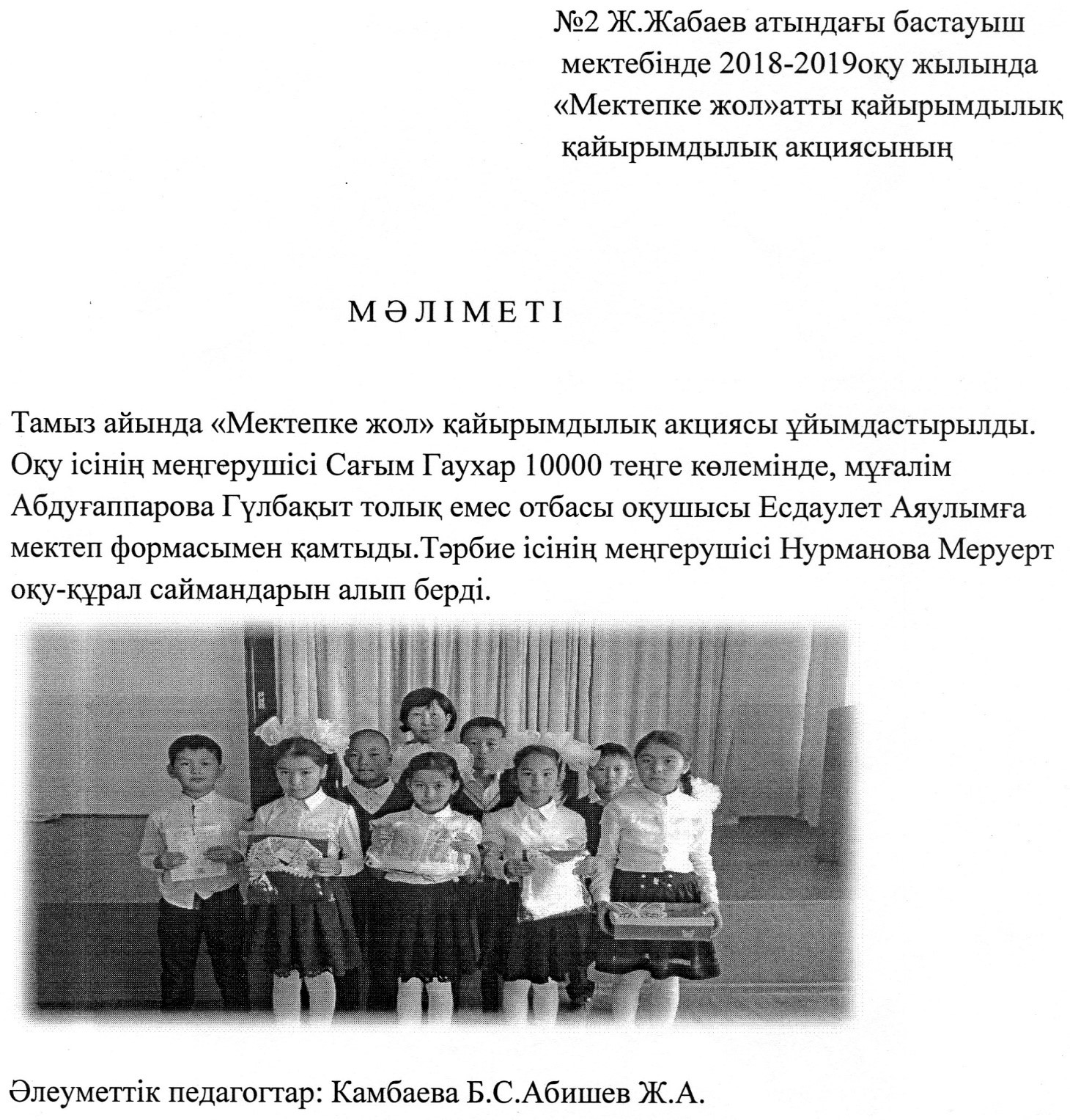 Ж.Жабаев атындағы бастауыш мектебнде мейірімді жүректер ынтымақтастық қайырымдылық акциясынан көрініс