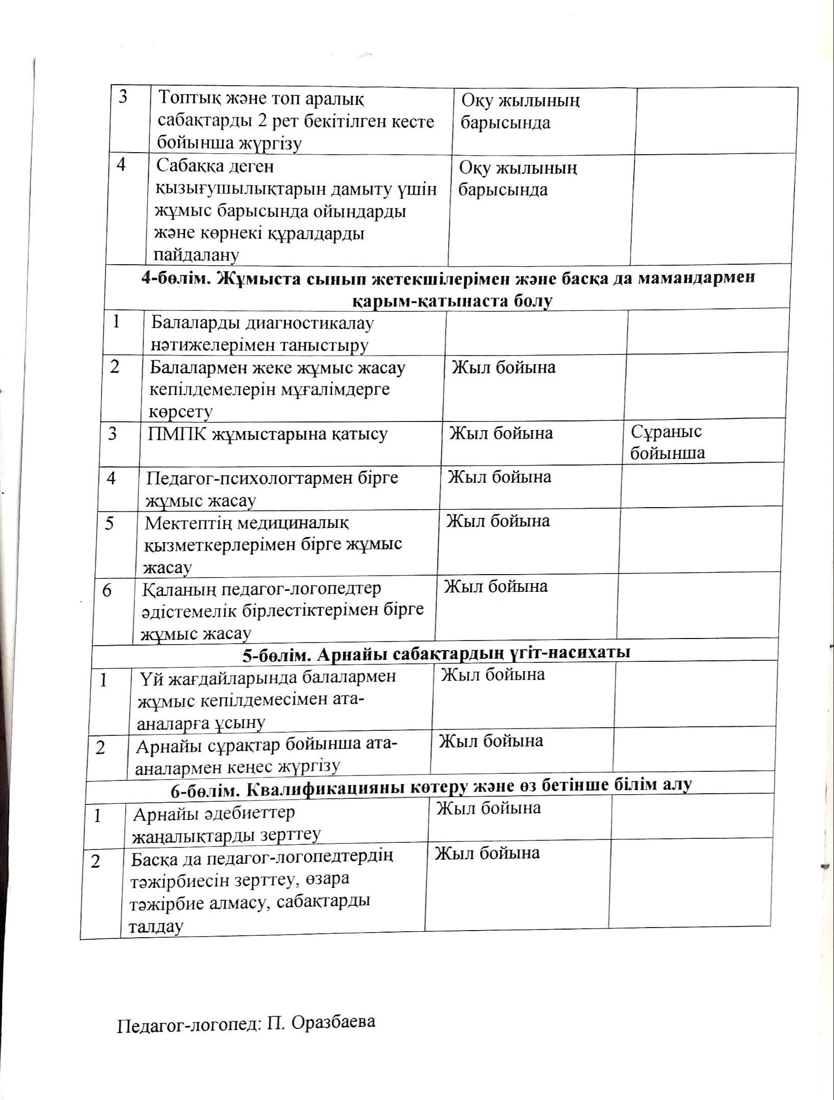 ПЕДАГОГ-ПСИХОЛОГТЫҢ ЖЫЛДЫҚ ЖОСПАРЫ