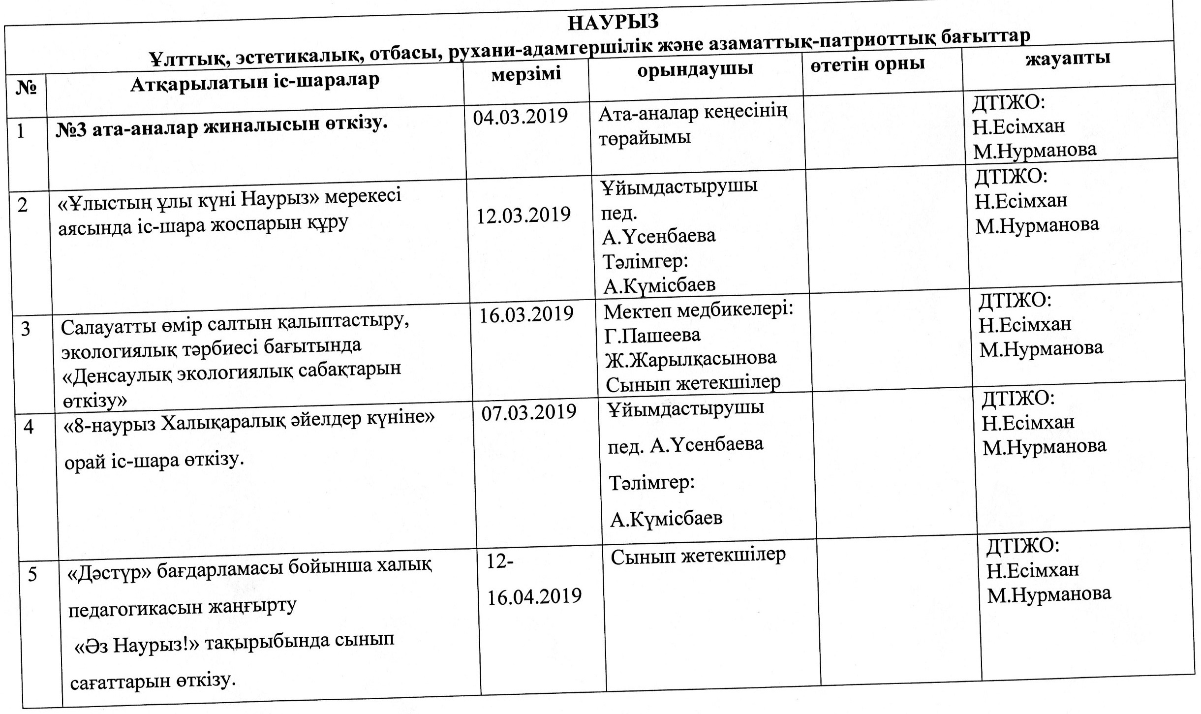 Тәрбие ісі жөніндегі орынбасарларының атқарған жұмыстарының есебі
