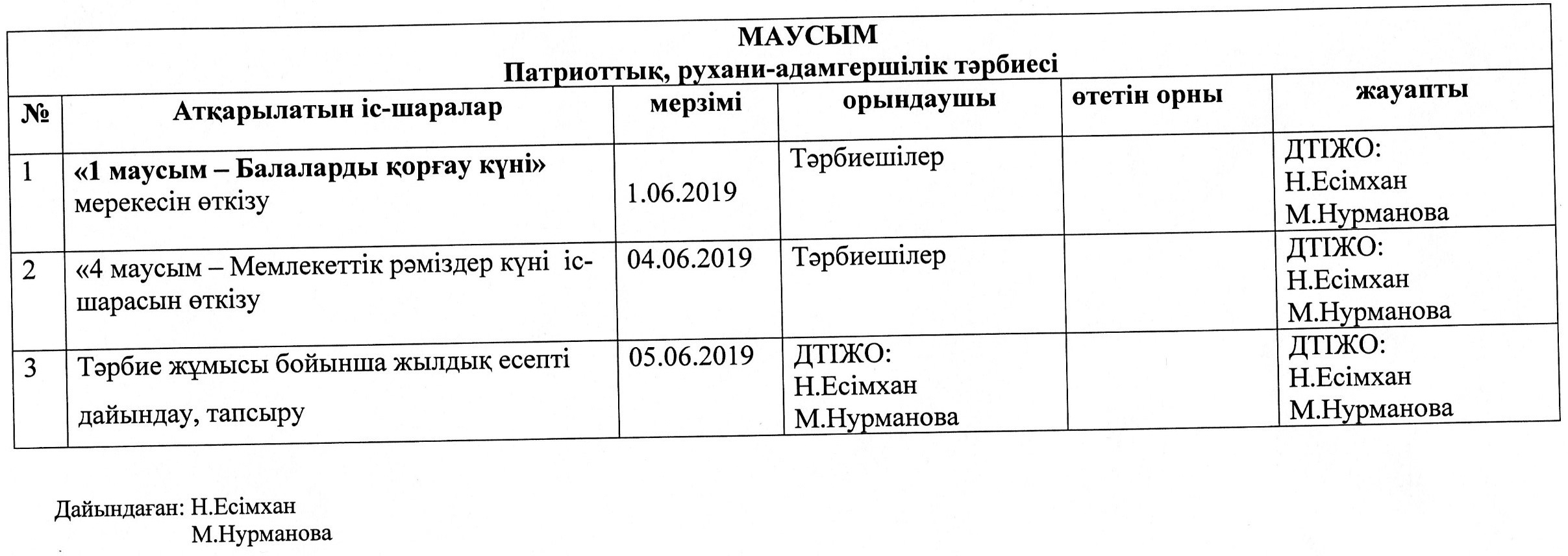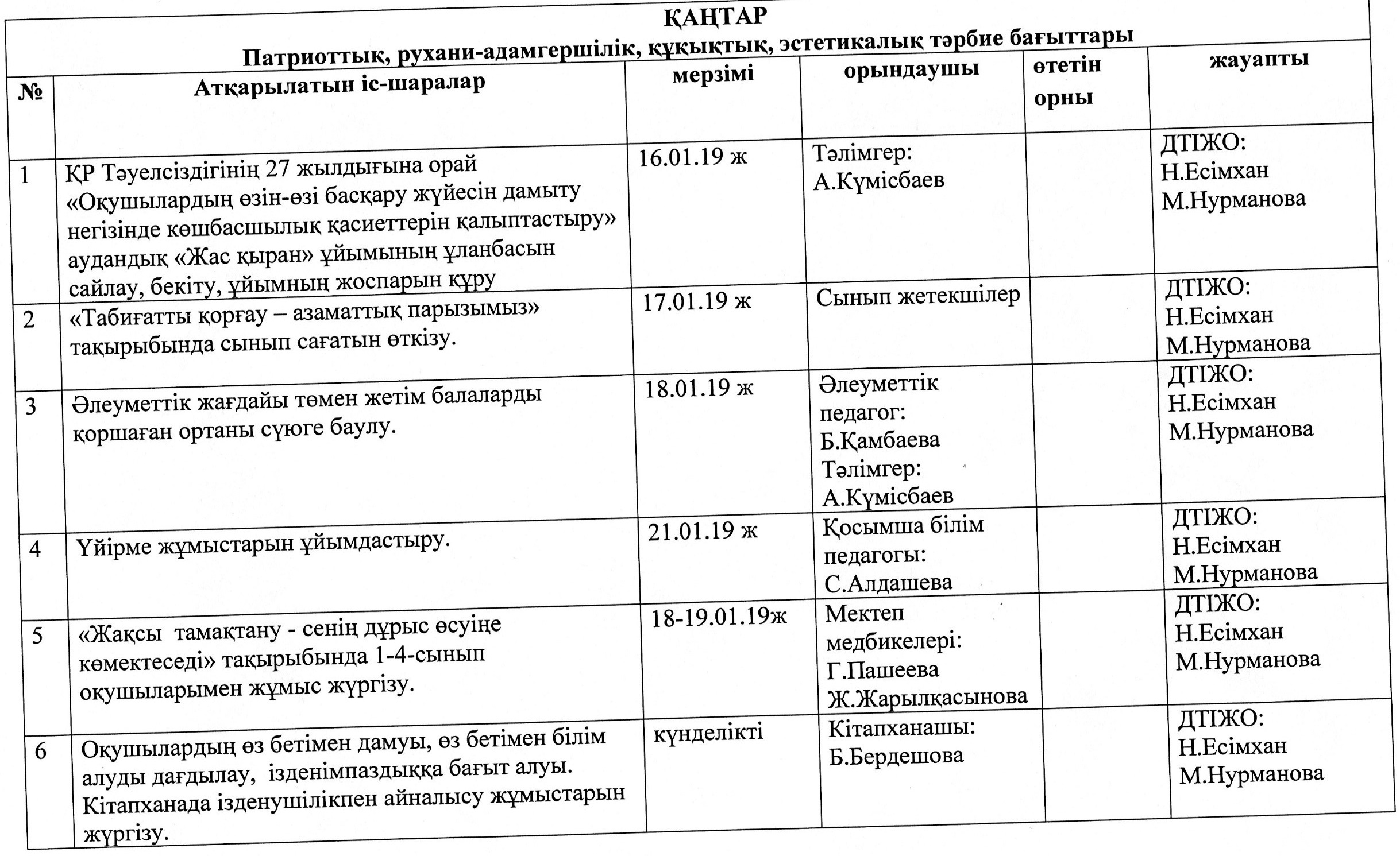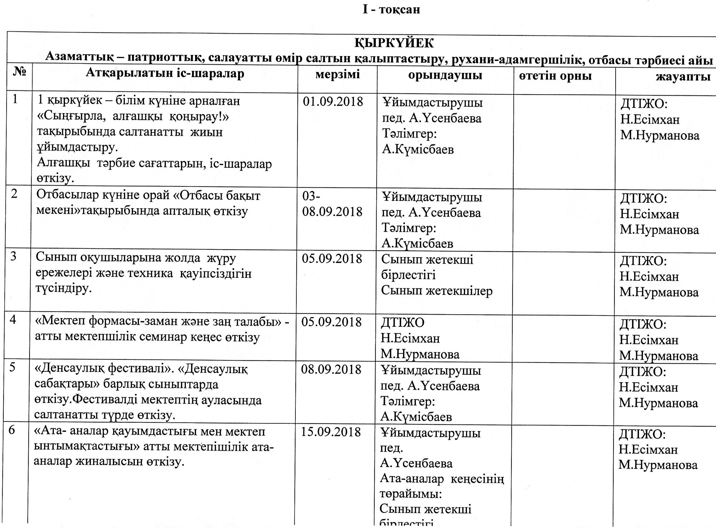 Тәрбие ісі жөніндегі орынбасарларының жылдық жоспары