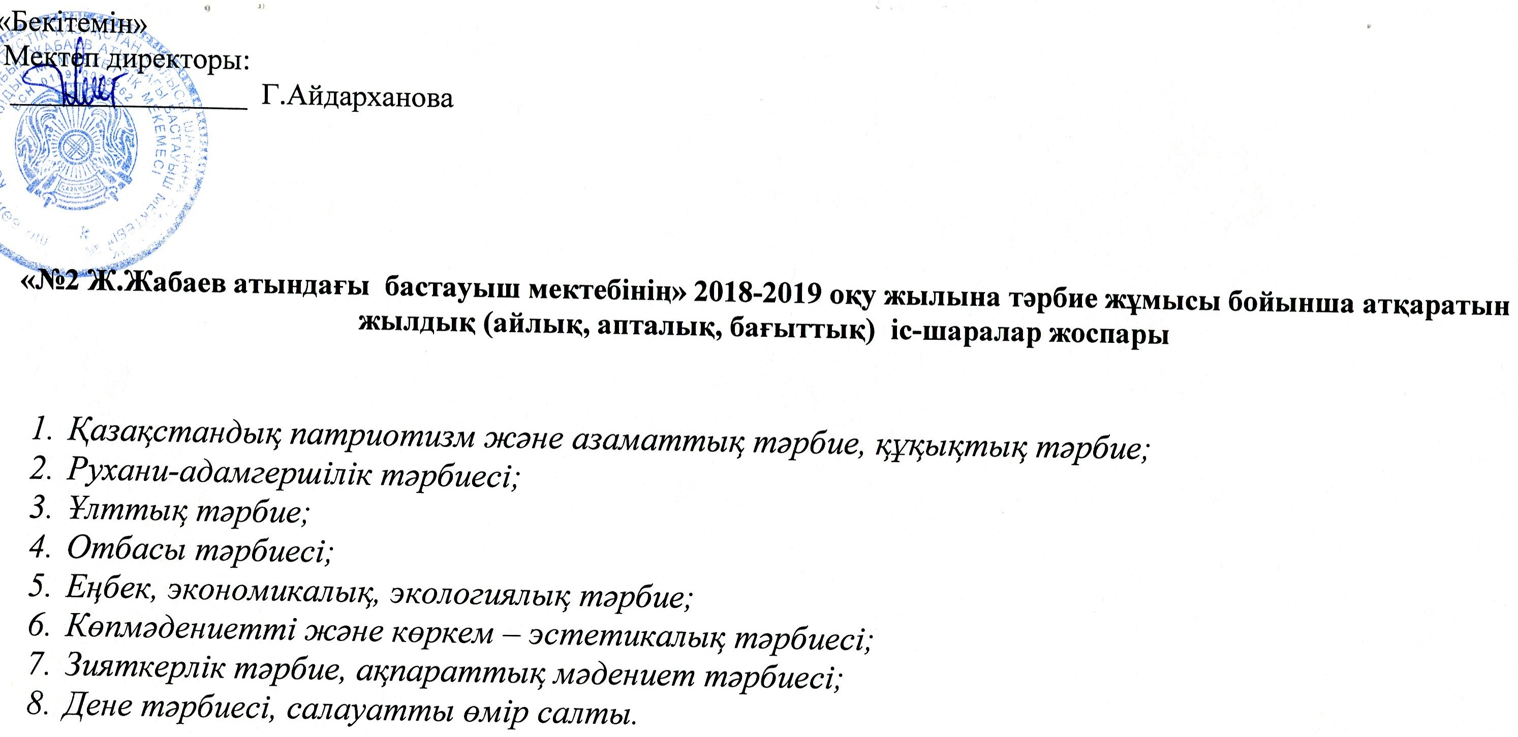 ПЕДАГОГ-ПСИХОЛОГТЫҢ ЖЫЛДЫҚ ЖОСПАРЫ