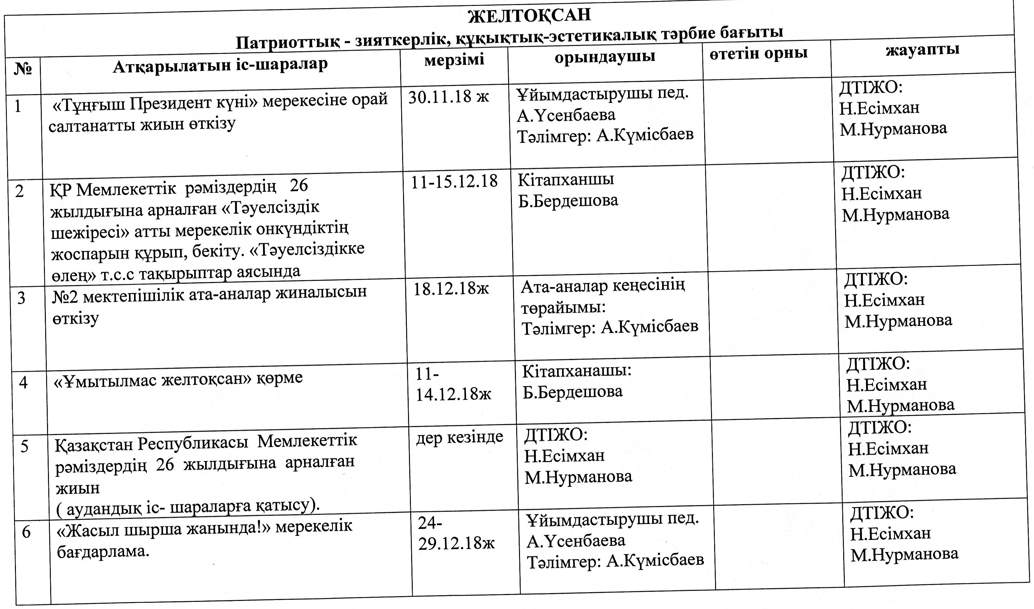 Оқу ісі жөніндегі орынбасарының жылдық жоспары