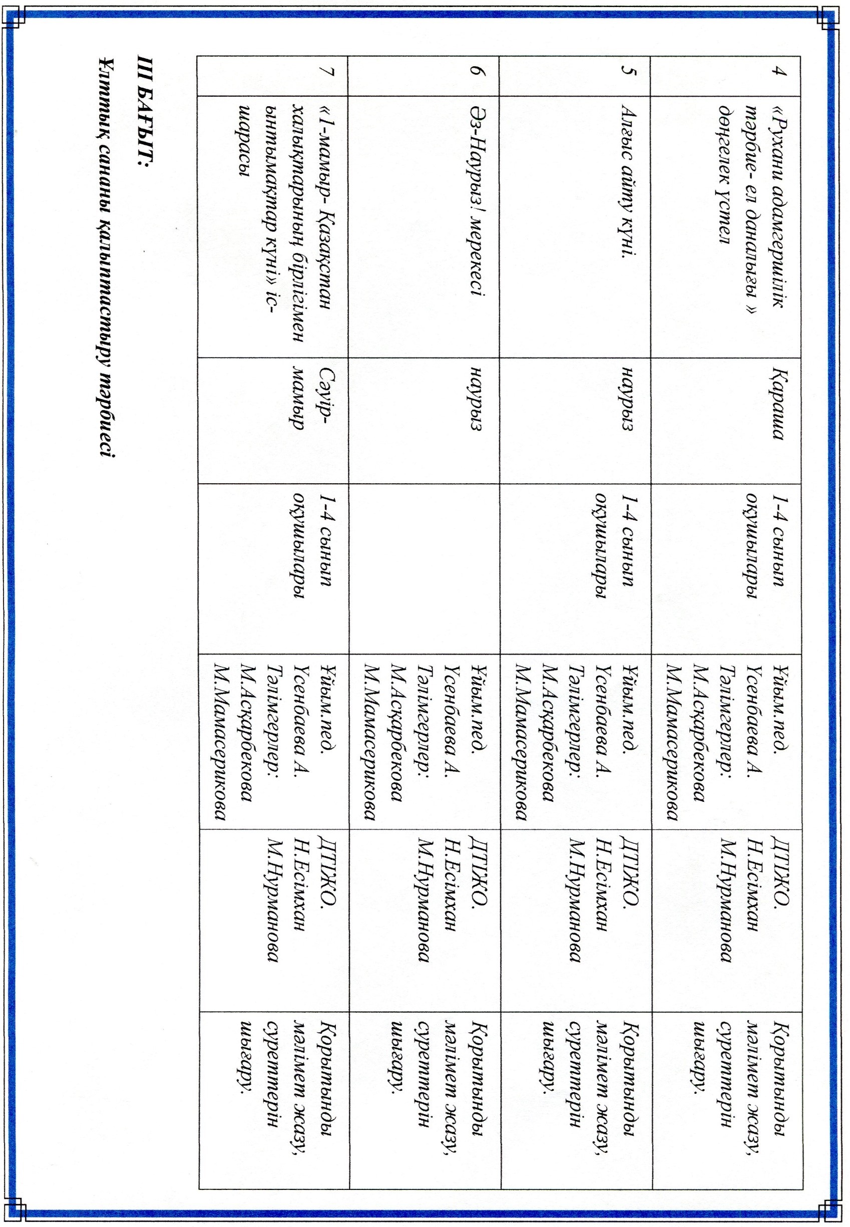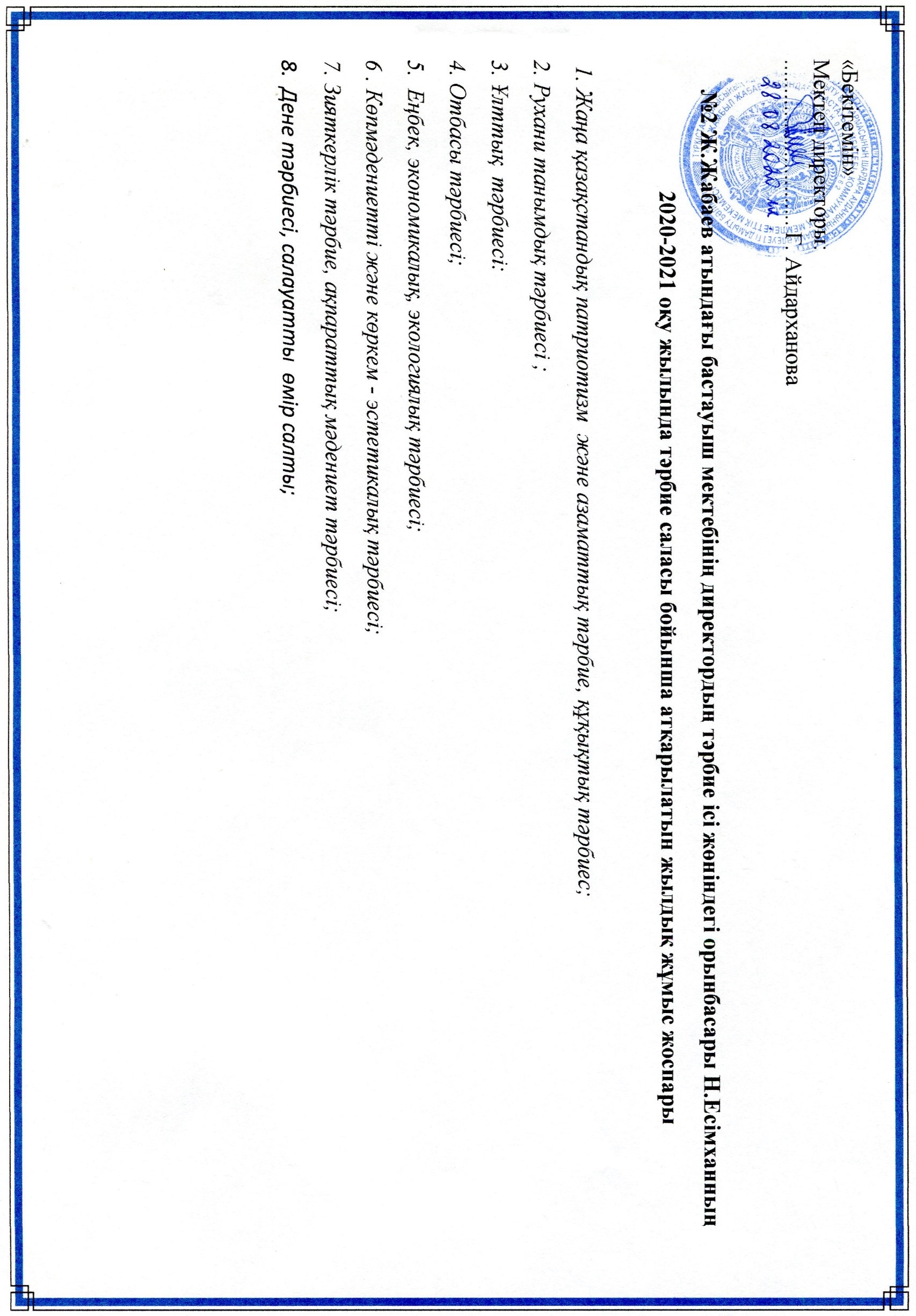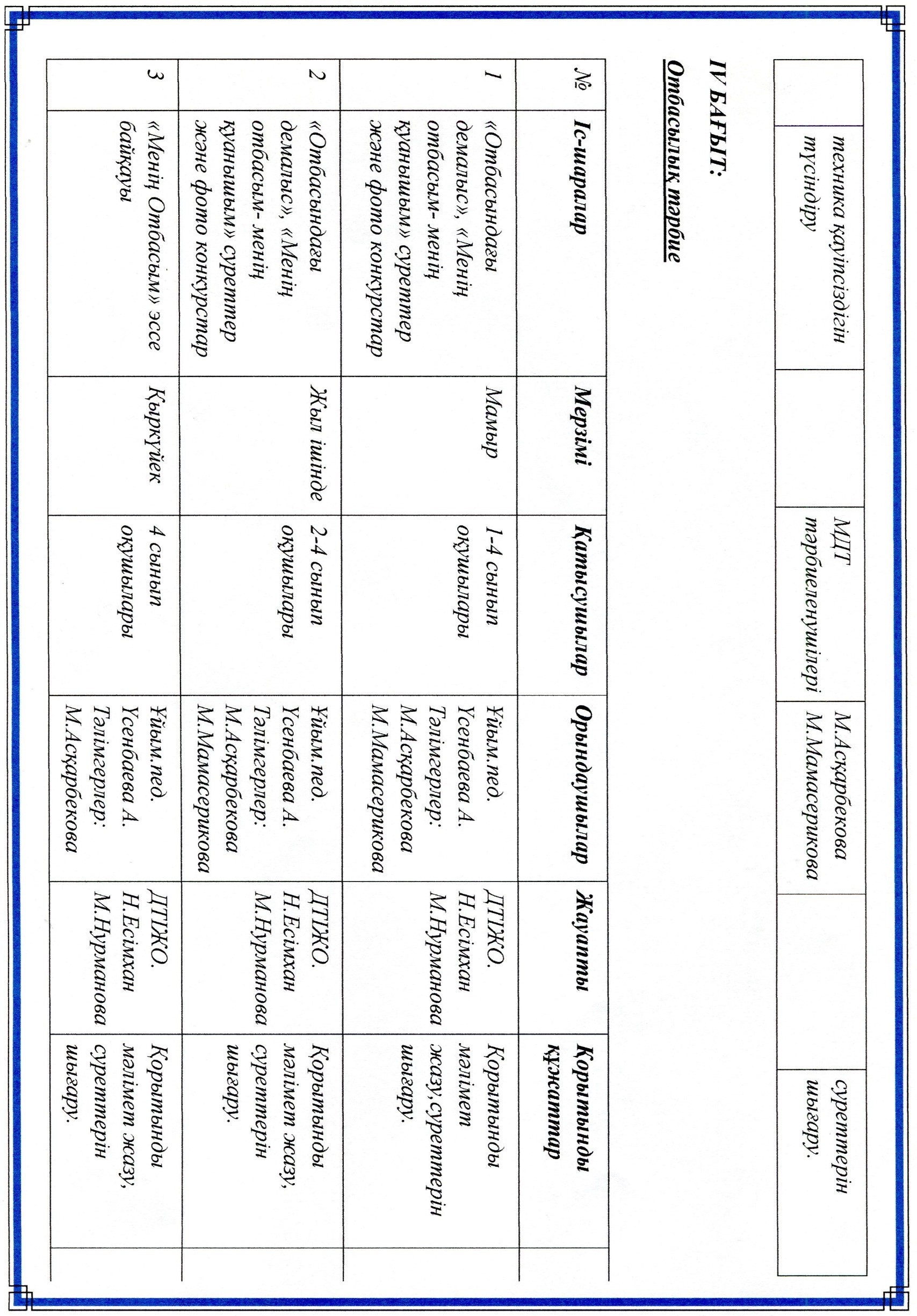 Тәрбие ісі жөніндегі орынбасарларының жылдық жоспары
