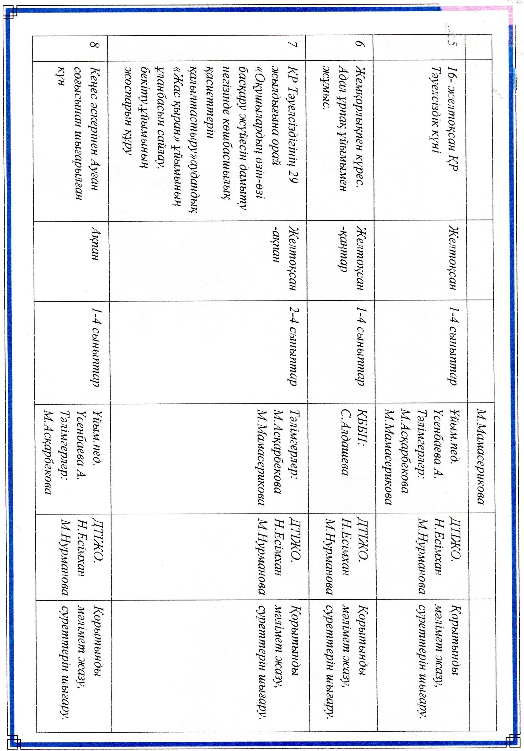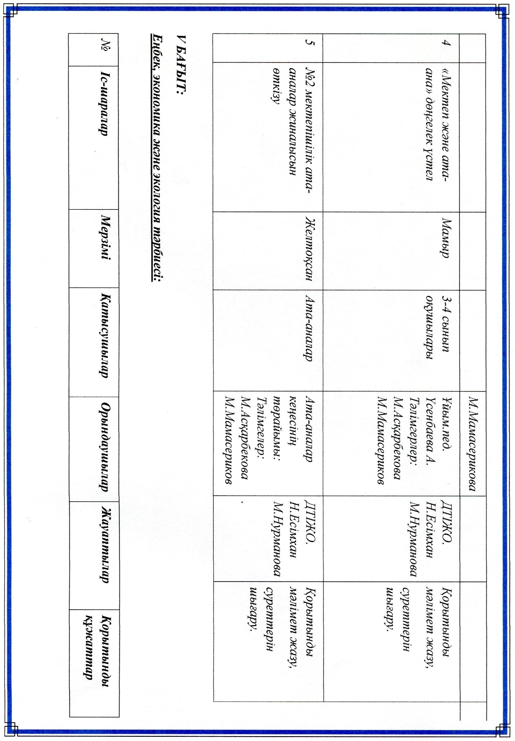 Оқу ісі жөніндегі орынбасарының жылдық жоспары